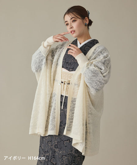 【YOUTOWA】和紙ジャカード透かし柄カーディガン