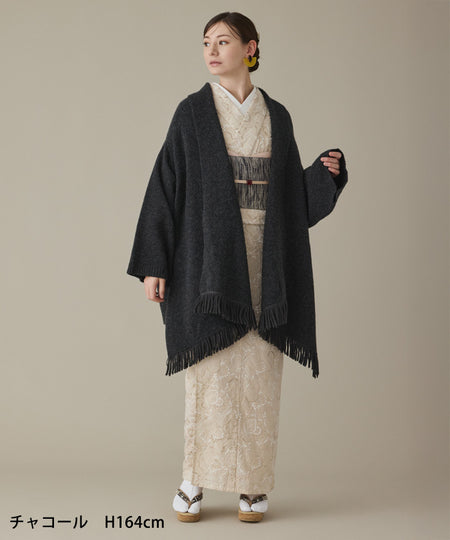 【YOUTOWA】フリンジショールニットカーディガン